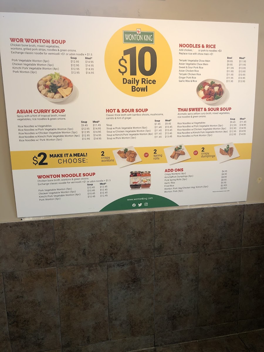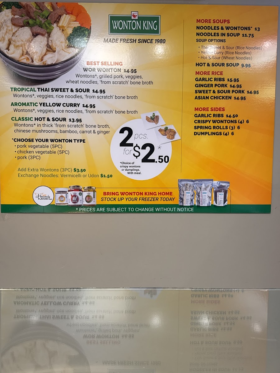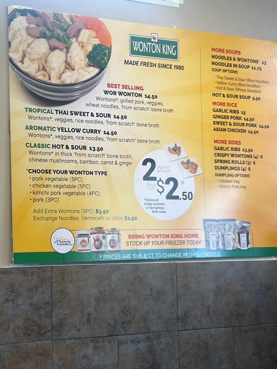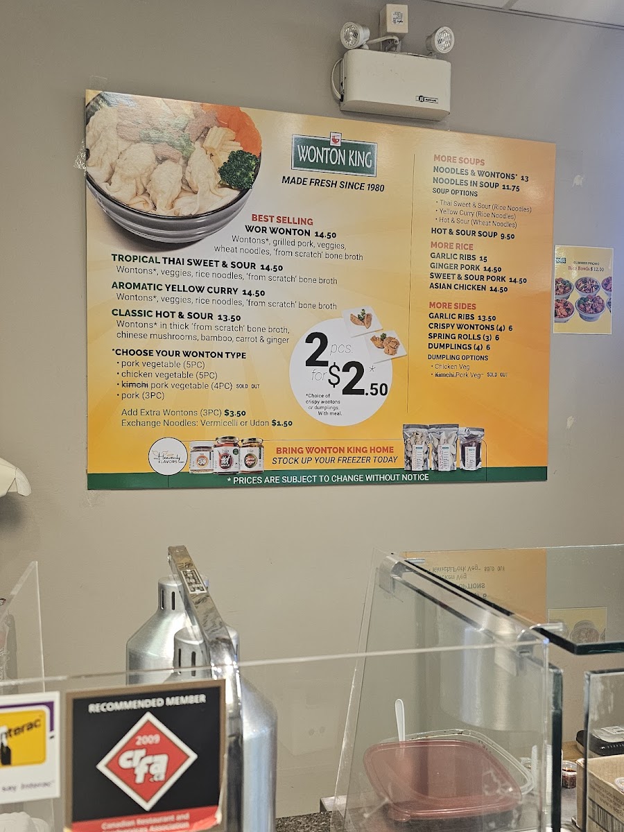 Welcome to Wonton King - McCall Lake (North), where we invite you to embark on a culinary adventure that celebrates the delightful flavors of traditional wonton cuisine! Located at 3449 12 St NE, Calgary, AB T2E 6S6, our menu is a feast for the senses, featuring a range of mouthwatering dishes that promise to satisfy your cravings. Indulge in our signature Wonton Only Soup with six delectable pieces or dive into the rich and flavorful Pork Wonton Noodle Soup, perfect for a comforting meal. For those seeking a twist, our Kimchi Vegetable Wonton Noodle Soup offers a zesty kick, while the Chicken Vegetable Wonton Noodle Soup is a delightful option for poultry lovers. With a variety of Health & Safety Soups, each packed with your choice of wontons, you're sure to find something that tantalizes your taste buds. Don’t forget to quench your thirst with our refreshing beverages! Join us at Wonton King and taste the specialties that keep our customers coming back for more!
